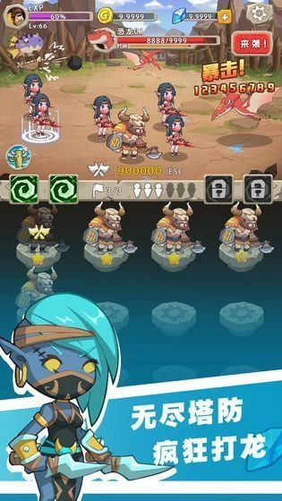 《全民打恐龙》是一款以原始人与恐龙战斗为主题的合成挂机游戏。游戏中有崇拜火焰的火族、崇拜森林的精灵族、崇拜野兽的兽族,以及崇拜死亡的神秘亡灵族。这四个来自不同领域的原始种族,为了对抗凶残的恐龙而联合起来。尽管他们分属不同种族,但为了共同的目标,依然齐心协力,联手投身这场无尽的战斗——全民打恐龙!