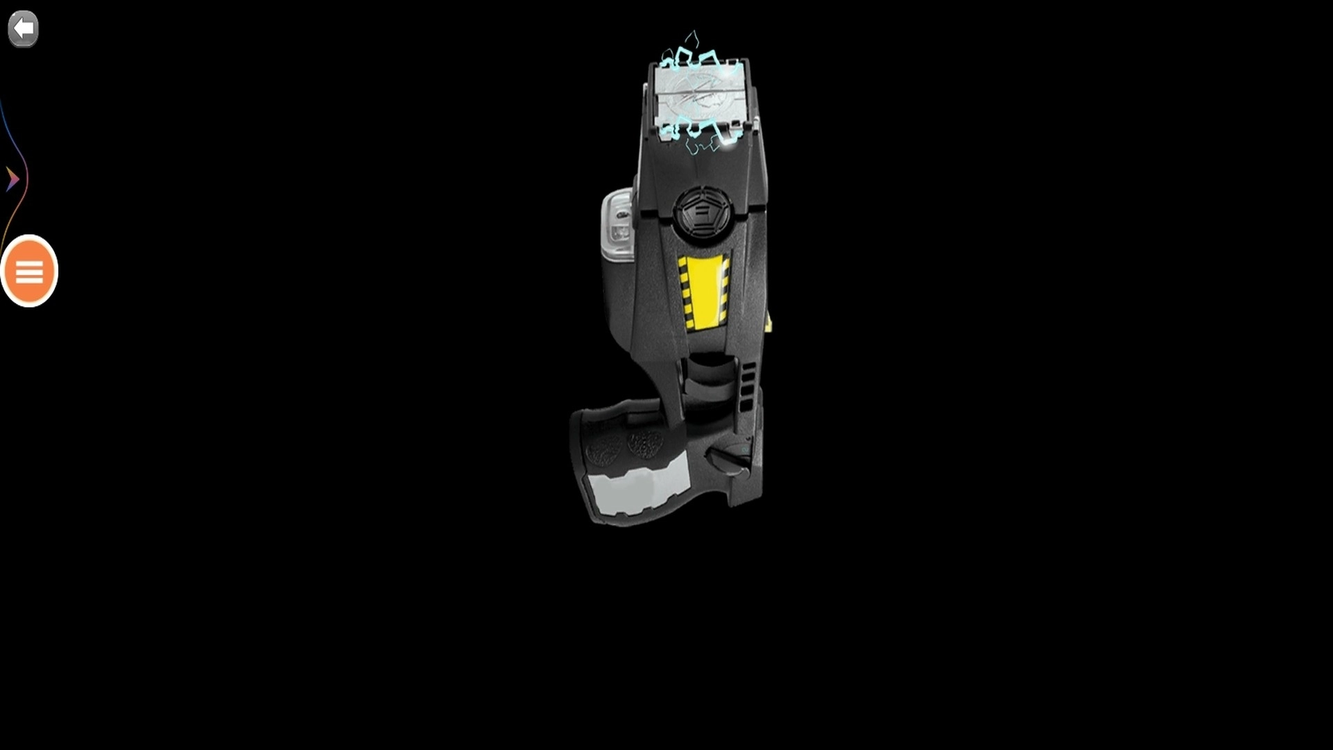 点击交互界面里的3D电击枪模型,就能触发该设备特有的电流动画,接触时间的长短会影响放电的持续时长。