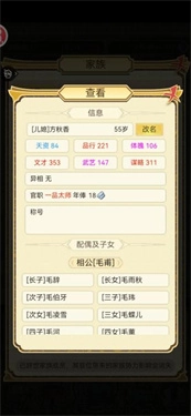 新增了“家族联姻”玩法,入口位于“家族关系”界面内。玩家可以从已结识的家族里挑选心仪的家族成员作为联姻对象,联姻的成功率取决于两个家族之间关系的亲密程度。
