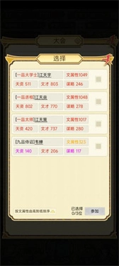 首先点击右上角的“文才”进入主界面,接着点击“谋略”选项,把它的两项属性都提升到200点。