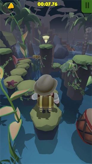 玩家通过点击或左右滑动屏幕,操控冒险者在小岛上逐格移动、转向,沿途收集钥匙碎片、宝藏,以及解锁下一章的新地图。