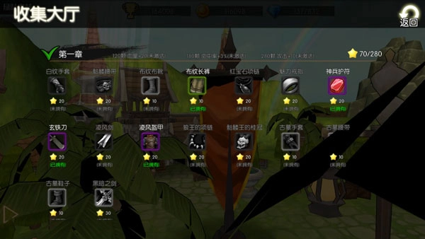 收集每个章节的所属装备,解锁未知的额外属性。