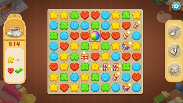这款游戏采用消消乐的玩法模式,玩家能够通过消除操作来获取游戏道具。
