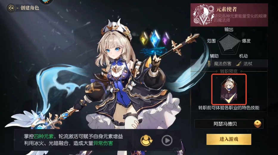 当然,并非所有职业都有两个转职方向,例如魔术师职业就只有一个转职选择,那就是元素使者。
