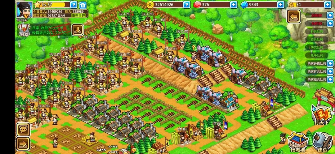 在《小小村长》单机版里,玩家得招募士兵和历史名将,打造属于自己的精锐部队,这样才能在逐鹿天下的征程中战无不胜。游戏别出心裁地划分成村庄经营建设与招兵买马争霸天下两大板块,让玩家在享受模拟经营乐趣的同时,也能体验到策略战斗带来的紧张刺激。在村庄经营建设环节,玩家可以自主规划村庄的布局,建造住宅、农场、矿场等各类设施,以此满足村民的生活所需和村庄的发展要求。