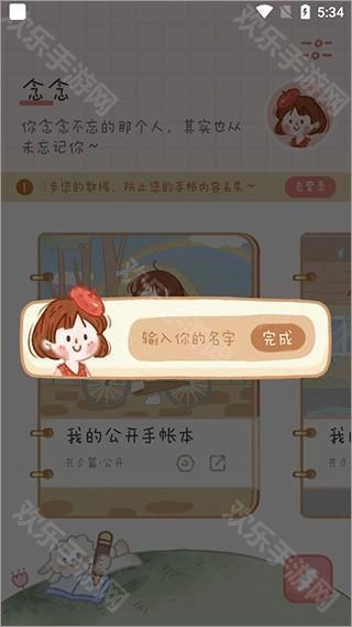 在手机上安装并打开念念手帐,首次进入软件时可以给自己取一个好听的名字。