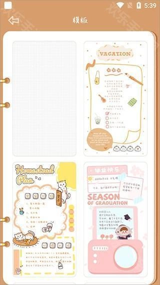 提供日记、月计划、习惯追踪等多种记事本模板,用户也能够选择空白模板进行自由创作。