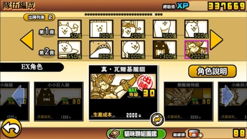 玩家能够自由组合不同的猫咪来组队。在游戏里点击猫咪的头部,就能消耗金币召唤猫咪参与游戏。每只猫咪的价格各不相同。