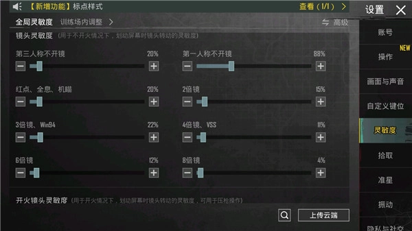 关于红点、全息与机瞄的灵敏度调节方法:可以在训练营里用后坐力相对温和的M416来测试压枪灵敏度。具体操作是站在10米靶的位置,开启红点瞄准100米外的靶子,连续射击三十发子弹,当所有子弹大致都能命中靶子时,此时的灵敏度就是比较合适的标准。镜头灵敏度建议设置为52%,开火灵敏度推荐53%。