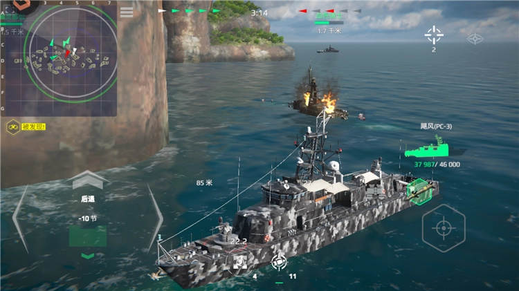 借助现代化雷达锁定敌方目标,通过发射导弹与舰炮对其实施打击,以此获取游戏币和经验值。