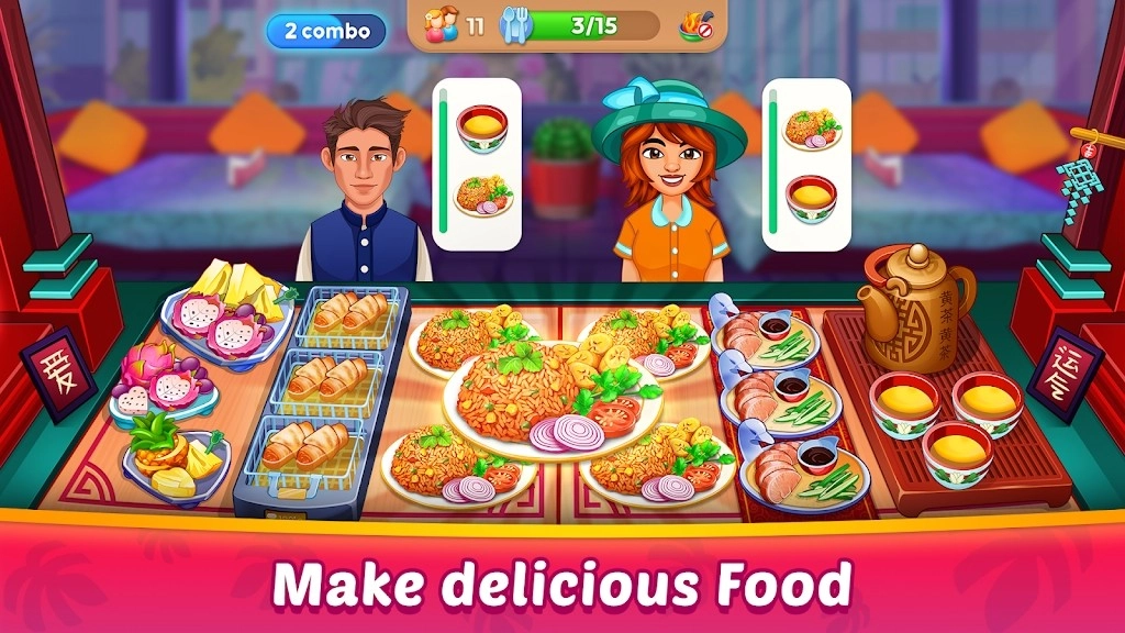 简化版亚洲美食与食谱,能在带时间管理游戏功能的餐厅里快速制作。这类烹饪游戏关卡多达数百个,上手容易但精通不易。