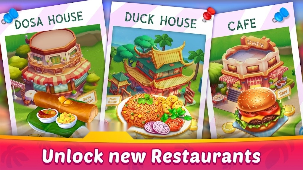 解锁全部菜单,提升你的烹饪技能,购置食品杂货与必需的厨房用具,进一步增强你的烹饪能力。