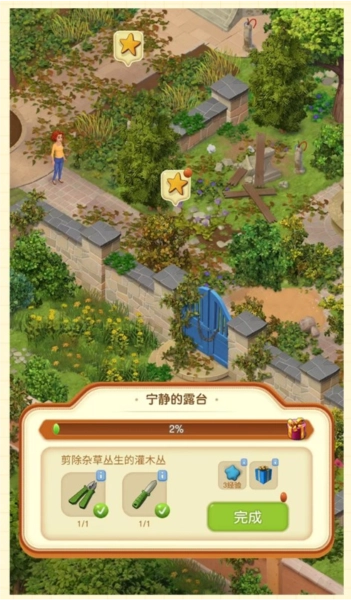 庄园前期装饰氛围不足,致使不少玩法无法解锁,这时就需要装饰精美的园艺品。这些园艺品可通过简单材料合成,合成后就能放置;当拥有足够多的园艺品时,还能合成高级园艺品,以此提升整个庄园的外观。