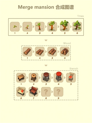 庄园合合国际服(MergeMansion)是一款益智休闲合并游戏。玩法规则清晰:玩家通过二合一合并生成新物品,合成特定物品可解锁地图、推动剧情;合成消除等操作不考验反应与操作能力,核心乐趣在于有限空间内的资源管理,尤其适合喜欢收纳整理的玩家。游戏操作简单,仅需二合一就能获得新物品,不要求手速和反应,但需合理利用有限空间,很适合有强迫症的玩家体验。从游戏里的小物件到整个庄园,所有内容都需通过合成实现;精心设计的关卡与细腻细节,让游戏过程成为享受,喜欢消除类游戏的玩家千万别错过。游戏画面采用色彩绚丽的卡通风格,多样材料可自由使用,融合了消除、合成、建造等元素,能让你一次玩个尽兴。