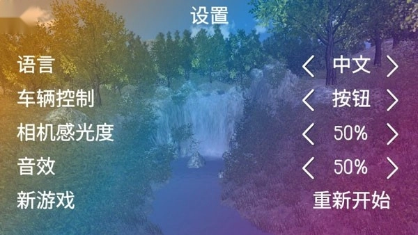 在设置页面中,直接把语言选项设为中文就行,同时也能在这个页面调整车辆、音效等相关设置项。