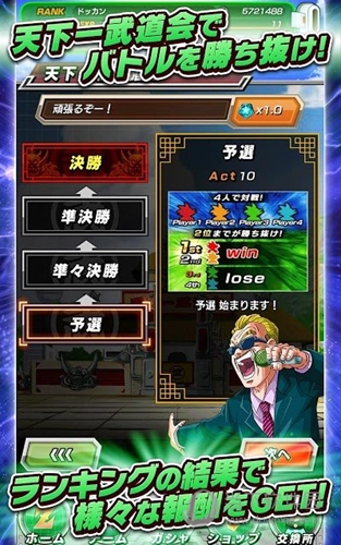 七龙珠爆裂激战日服版是专门面向日本或熟悉日文的玩家推出的同名动漫改编游戏。玩家能在游戏里重温动漫里的热血剧情,游戏还加入了天下第一武道会等经典玩法。此外,该游戏配备日语配音功能,让玩家能真切沉浸在七龙珠的动漫世界中。在游戏里,玩家还可以参与Dokkan活动和世界锦标赛;战斗时角色会集气释放必杀技,释放必杀技时会切换到特殊画面,被击中的敌人不仅会被击飞,还会呈现出撞破手机屏幕的夸张视觉效果。