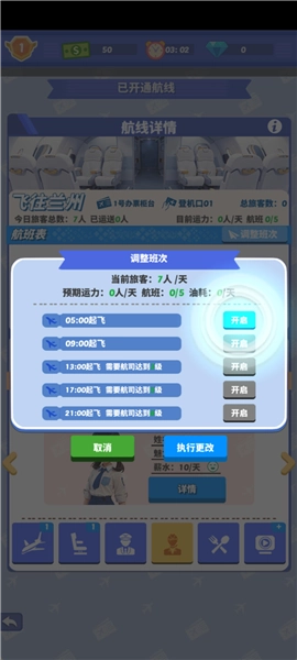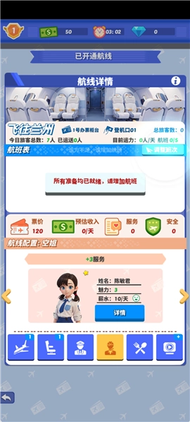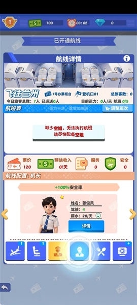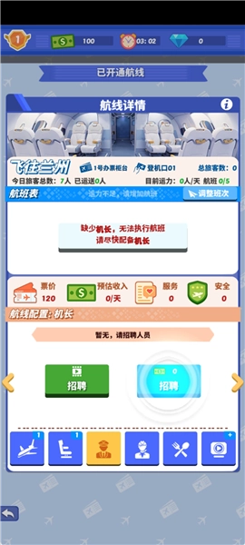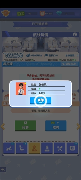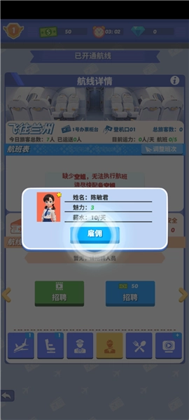 【管理机组人员】负责机长与空姐的招聘及培训工作。机长作为飞行安全的核心保障,空姐则是优质服务的重要开端,需时刻留意他们的身心状态,避免过度疲劳影响工作。