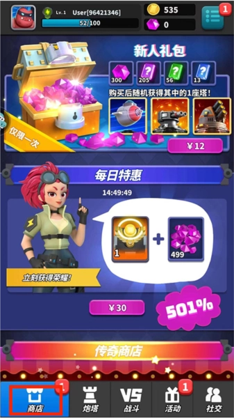 进入【商店界面】,这里涵盖“新人礼包”“每日特惠”“传奇商店”等多种类型的道具,玩家能依据自身需求挑选对应的道具。