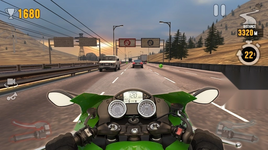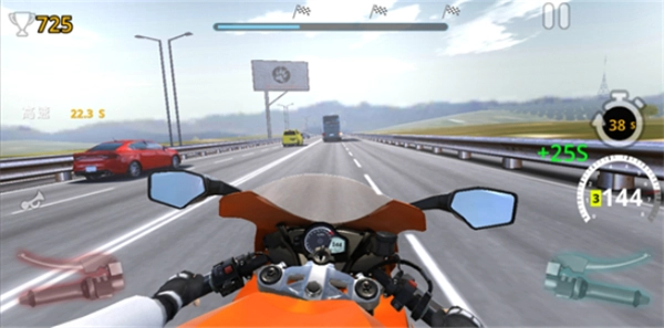 摩托之旅的游戏屏幕由3D引擎打造,呈现出高清逼真的画面质感与拟真音效。