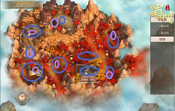 除了上述两个小技巧外,玩家还需熟悉邪魔的常出没点,在确认当前地图存在高品质邪魔时,精准快速地找到并获取经验。邪魔主要出现在云云灵山、成都西郊、天化村这三个地图中,具体的出没地点如下: