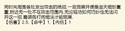 特殊效果:让对手飙血(“飙血”和“流血”不是一回事,不会对轻功“血影步”产生影响)