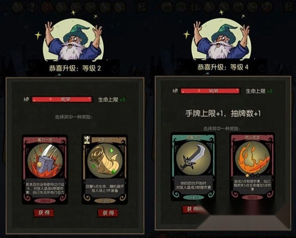 在游戏里,通过打怪升级不仅能获取新的卡牌,还能让角色的生命值回满。当达到特定等级时,还可以提升手牌的上限数量以及每次抓牌的张数。不过要注意,战斗中损失的血量在战斗结束后是不会自动回满的,需要通过触发分支事件、使用各类治疗卡牌,或者再次升级才能恢复。