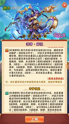 玄金战宠渊神·鳐祖的援护机制同样值得重视,它具备首个气势与无双血量削减的双重机制,使战宠也拥有了打破敌方无双变身的能力,从而限制住对手的对战强度。通过战意增减与气势增减带来的多层数值削弱效果,能够精准打击当前敌方最强力的属性加成,有效削弱其核心战力。