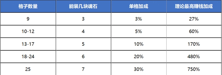 所谓6+1,就是6块4色且为纯色的魂石,再加上1块1格的魂石,加起来总共是25格。
