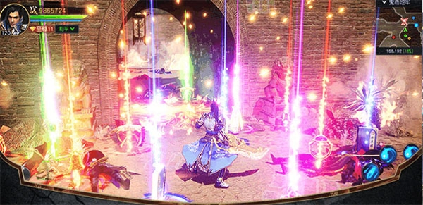 具体到破军的技能,泰山压顶能眩晕控制敌人并造成伤害;血引狂刀则可旋转刀刃对附近敌人进行4次AOE伤害,作为强力群体输出技能,用来清怪也十分合适。