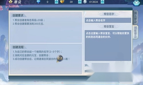 除了加入帮会,20级以上的玩家也可以选择创建帮会,成为一帮之主。不过,在《龙武》里创立帮会需要投入大量时间和精力,才能推动帮会正常运营、维护与升级。要是觉得创建帮会太过辛苦,自己又没有足够的时间和精力,那就可以直接加入已有的帮会。