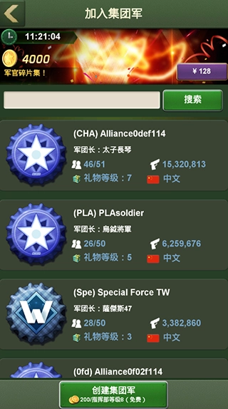 从屏幕下方的入口进入集团军,没有集团军的小伙伴可以先加入集团军,找到自己的军团组织。