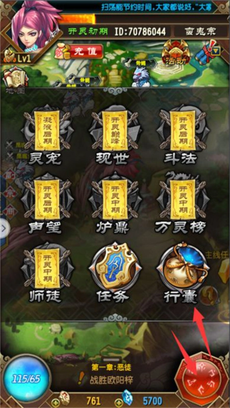 领取后可以点击右下角『菜单』打开『行囊』