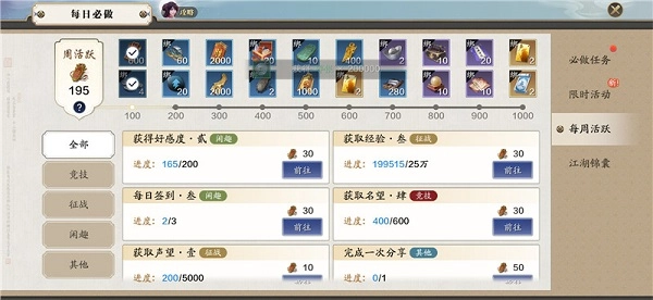 可以通过完成每日任务来增加周活跃值,每累积100活跃值就能领取相应奖励,其中包含用于提升装备等级的材料;同时,完成天涯战令的任务要求也能获取这类材料。