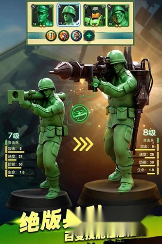 《兵人大战》微博版是一款以玩具为题材的战略游戏,其题材十分新颖,融合了建造、策略、对战、战役等多种热门玩法,玩法独特且富有乐趣。在游戏的战役模式中,玩家可以看到侦查兵、陆战队、空降兵、爆破手、冲锋队、战场特工等各类兵种,这些兵种之间存在相互克制的关系,同时还能通过进化升级,让自己的队伍变得更加强大。