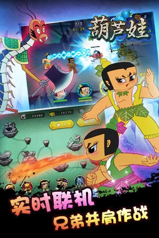 葫芦娃是一款横版动作策略手机游戏,改编自经典国产动画《葫芦兄弟》,力求还原大家真实的童年记忆。游戏打破传统AI战队模式,玩家可通过默契的战略组合,与好友实时互动,带领七位葫芦兄弟勇闯妖巢、维护正义。100多个关卡等待挑战,原创的角色造型搭配精准还原的故事情节,将唤醒你童年的梦想……怪物,把爷爷还给我!还给我爷爷!