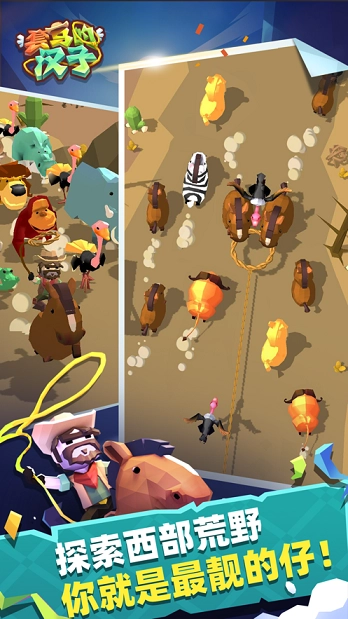 你是一位骑着小马驹的快乐牛仔,点击屏幕抛出套马杆,滑动手指让套索左右移动,就能捕捉上百种超Q超萌超可爱的小动物。