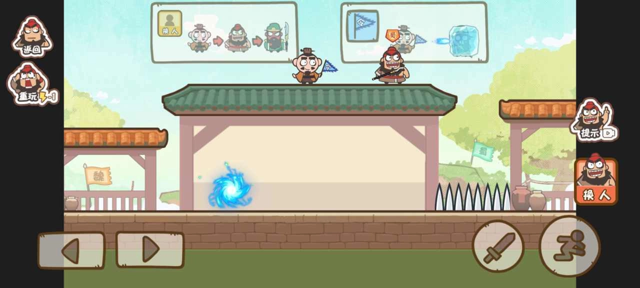 游戏里有三位角色:张飞、关羽和刘备,玩家得操控这三位角色,在不同场景里结合他们各自的技能与玩法来通关,整个玩法既有趣又烧脑。