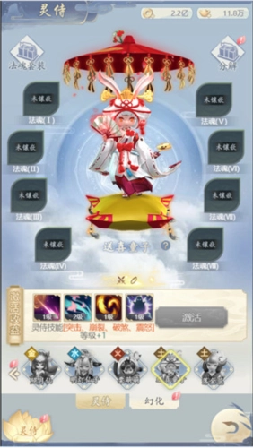 灵侍幻形能让上阵的灵侍切换酷炫外观,激活幻形还能提高灵侍技能等级。激活幻形需要镶嵌8个紫色5星魂枢道具,已镶嵌的魂枢可消耗灵性值进一步培养,为三个角色增添可观战力。