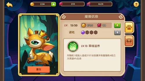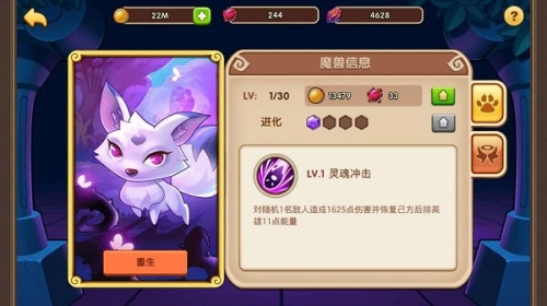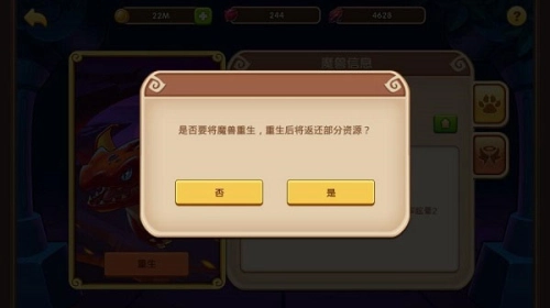 PS:要是你发现自己培养的魔兽不对也不用着急,我们有重生功能,能返还部分消耗的材料,让你没有后顾之忧。