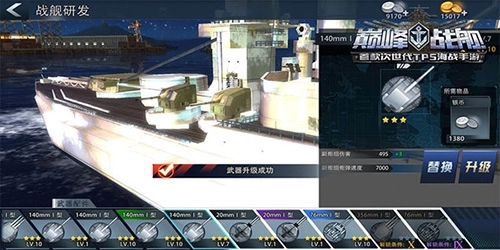 战舰的配件包含舰体、引擎、鸵机和雷达这四个部分。若要对这些战舰进行升级,就需要对应的材料,玩家能够通过战斗、完成每日任务、参与特训等途径来获取这些材料。