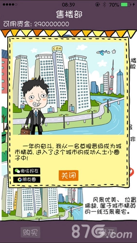 《买房记》是一款十分有趣的文字模拟经营游戏,能让你深切体会到赚钱的乐趣。在游戏里,玩家将化身在城市奋斗的年轻人,你的目标就是在一年时间内,凭借仅有的三千元本金,赚取数百万乃至数千万,最终买到心仪的房子。