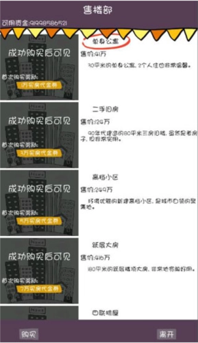在《买房记》游戏初期,玩家只有3000可用资金,几乎无法开展任何操作。为了获得更有利的开局,我们可以通过反复结束并重新开始游戏,让初始阶段就能购买到最便宜的低价商品,以此加快前期资金的积累速度。