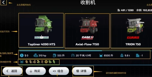 然后随意选择一款车,比如“收割机”,就能在界面上看到这类车的基础信息,具体内容如图所示。