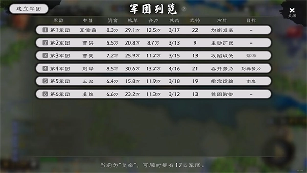 君主的官爵等级越高,能够同时统领的军团数量就越多,最多可以达到十二支。