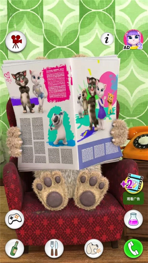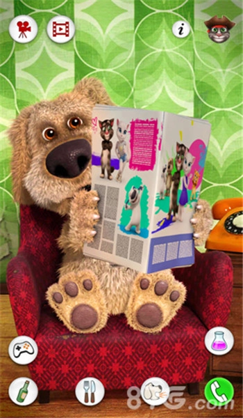点击狗狗本右侧的电话,电话就会响起来,狗狗本会拿起电话倾听,这时你可以和它对话,狗狗本会认真听你说话,还会重复你说的内容,你说什么它都能听到。