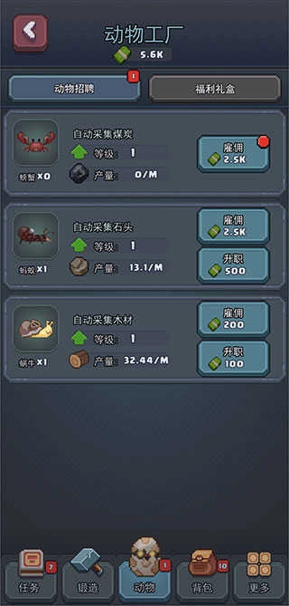休闲模拟养成类玩法,玩家可通过挖掘矿物解锁更多资源材料,以此加速发展进程。