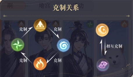 游戏里设有“水火风土阴阳”六种属性,它们彼此间存在克制关联:水克制火,火克制风,风克制地,地克制水,阴与阳相互克制。