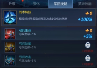 英雄还可分为战斗型与内政型,二者的核心差异在于军团技能所带来的加成效果。