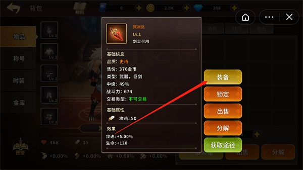 击败BOSS后有一定概率获得强力装备,装备后能提升角色的各项属性。