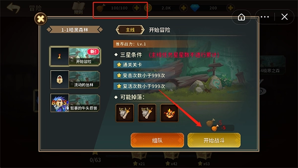 每个冒险关卡都要消耗五点体力值,体力值的上限是100。